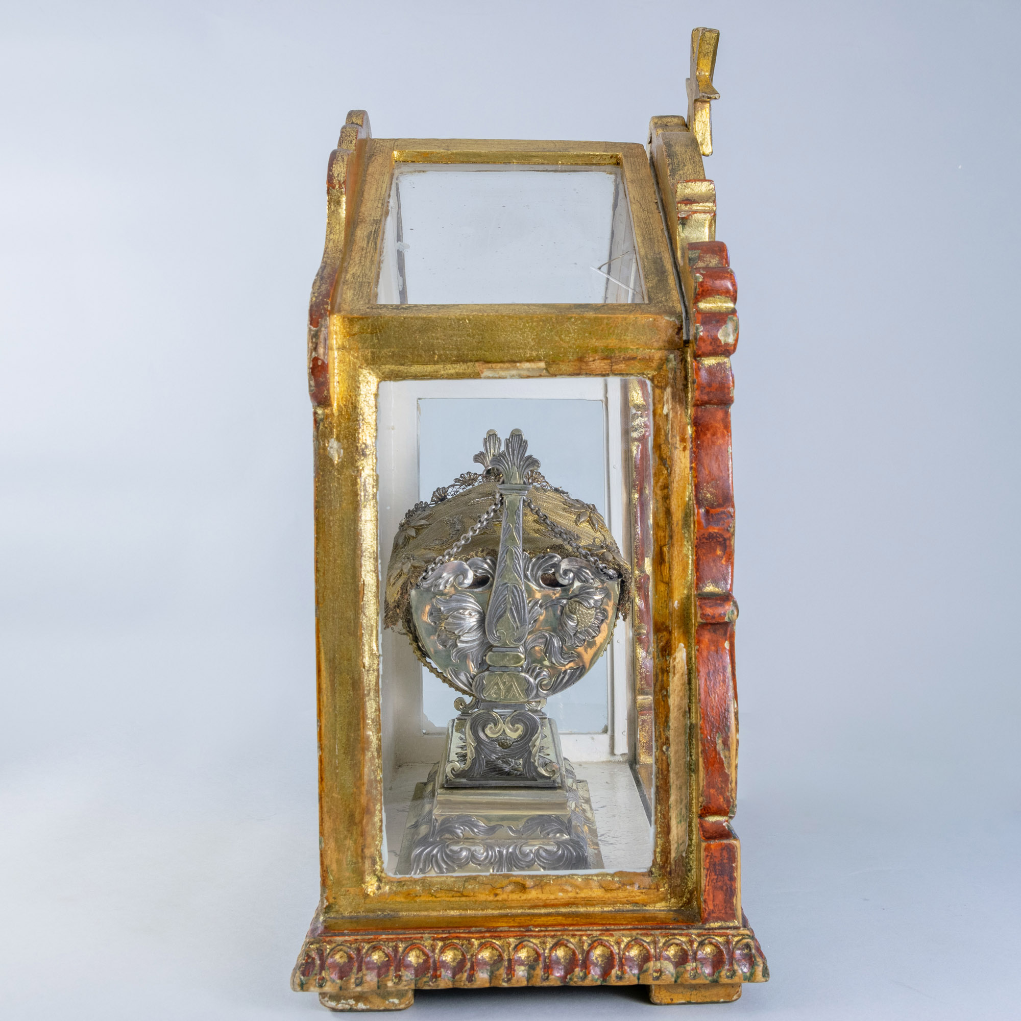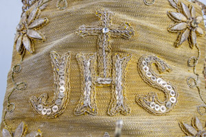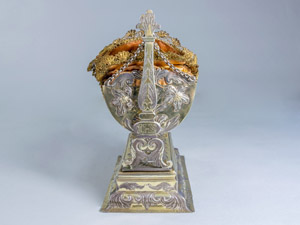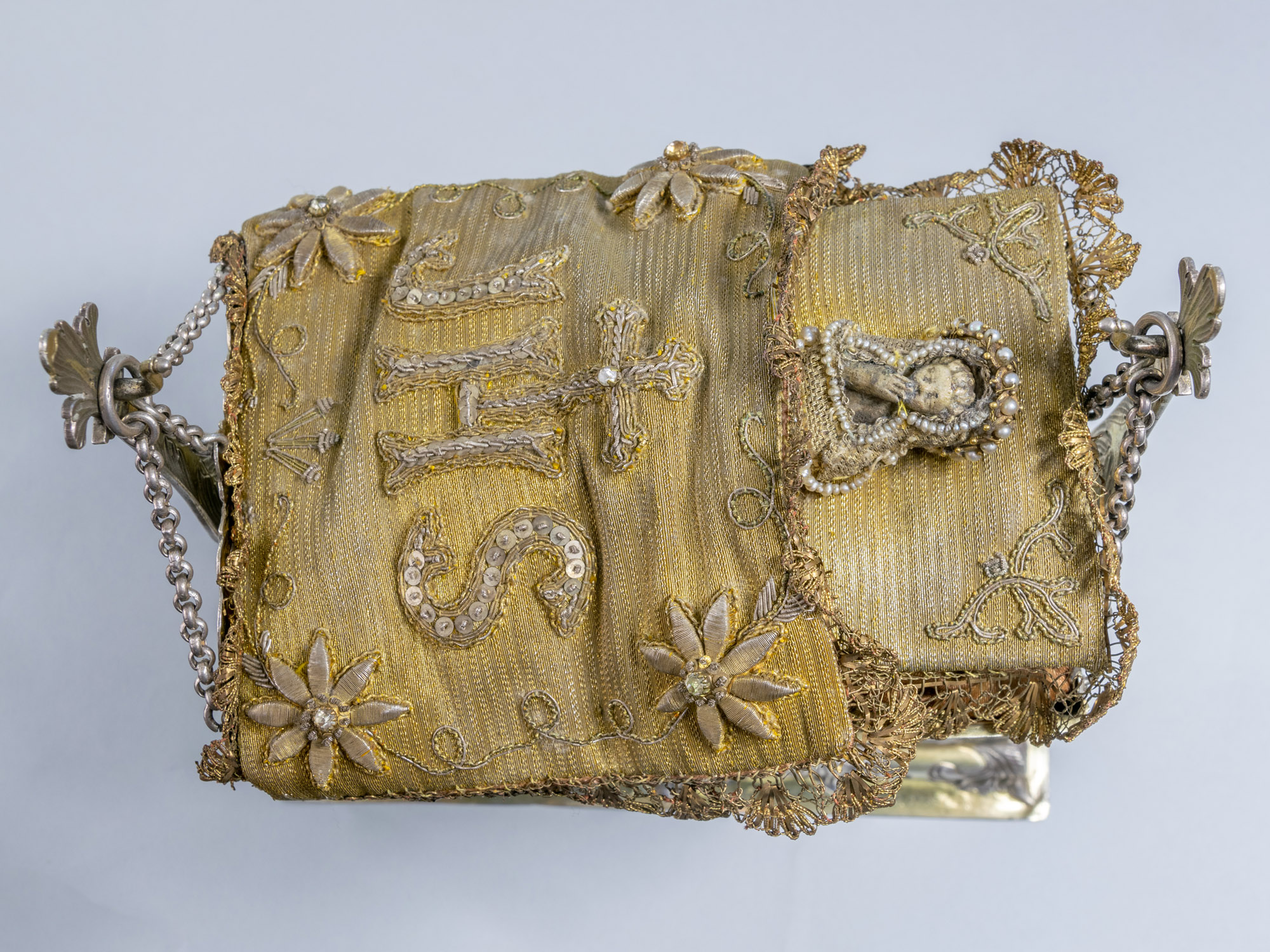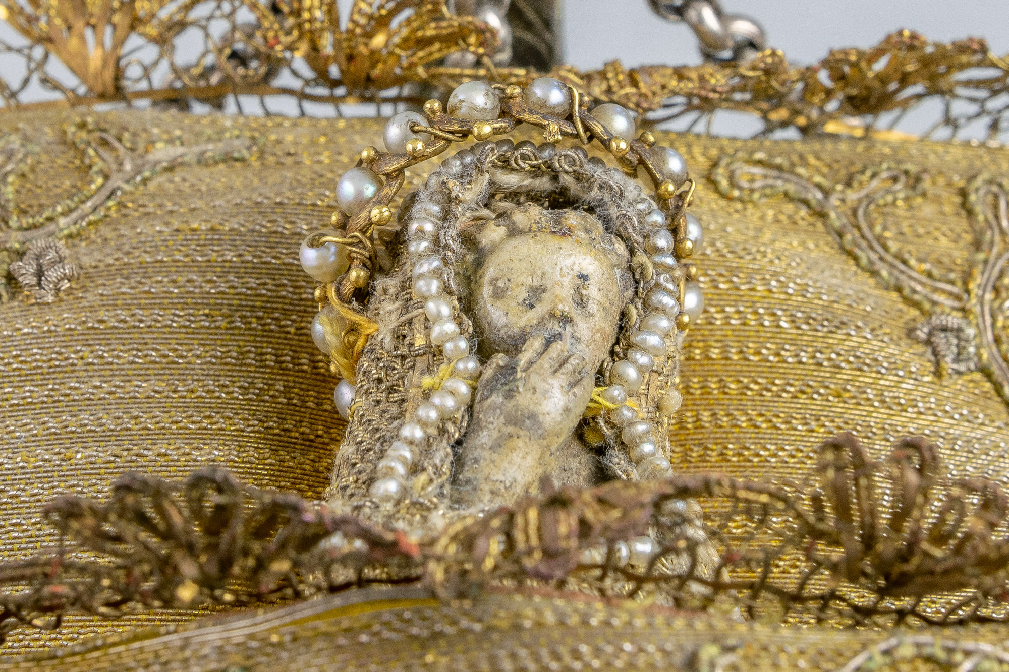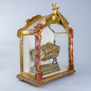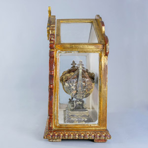 Srebrna, pozłacana kołyska z Dzięciątkiem Jezus